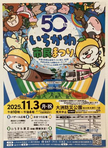 今回は来る11月3日㈷開催される、いちかわ市民まつり参加のご案内です。