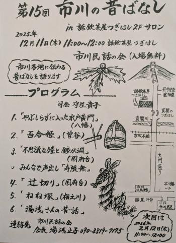 公開日:2025年12月10日イベント第15回市川の昔ばなし開催日:2025年12月11日(木)