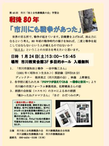 公開日:2026年01月15日イベント戦後80年「市川にも戦争があった」 映像記録「市川市須和田と戦争」公開開催日:2026年01月24日(土)